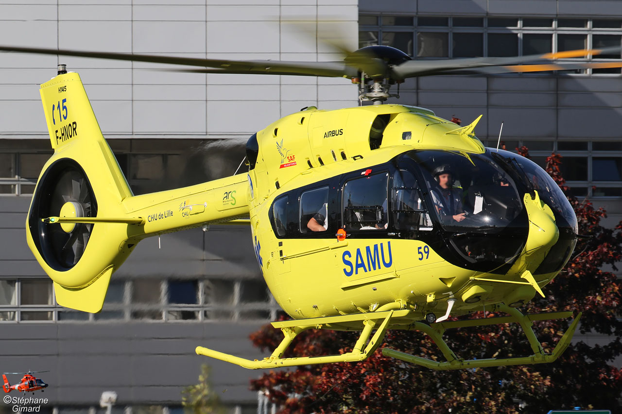 Après avoir participer à la conversion des pilotes sur ce nouveau type de machine sur la base de SAF HELICOPTERES à Alberville, l'H145 F-NOR est depuis début octobre entré en service au SAMU 59 à Lille.