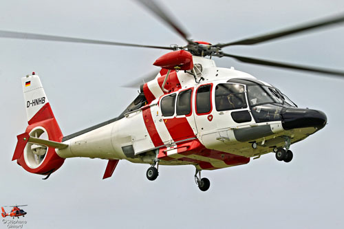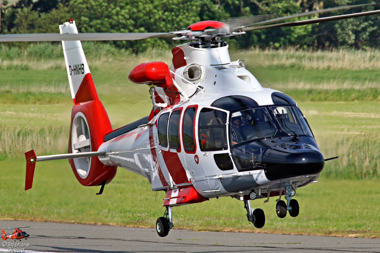 Nous avions déja photographié l'hélicoptère H155 D-HNHB en 2018 à Emden, il portait alors une belle livrée bleue.