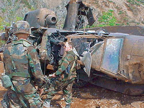 Le 28 juin 2004, un AH64 Apache s'écrase lors d'une mission dans les montagnes afghanes. Un UH60 Blackhawk qui l'accompagnait dépose des soldats qui sécurisent la zone, extraient les 2 pilotes dont l'un est gravement blessé puis les évacuent vers Kandahar