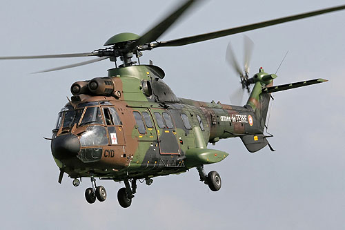 Hélicoptère AS532 Cougar en camouflage "Europe" vert - terre - noir (Pau, 2012)