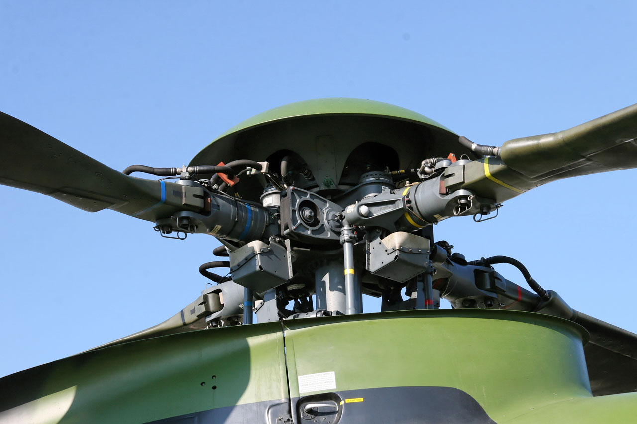 Hélicoptère Cougar Horizon avec son radar déplié,