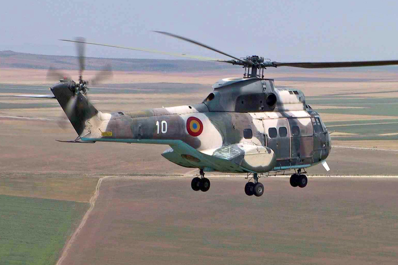 Hélicoptère IAR330L Puma en camouflage sable-terre-vert
