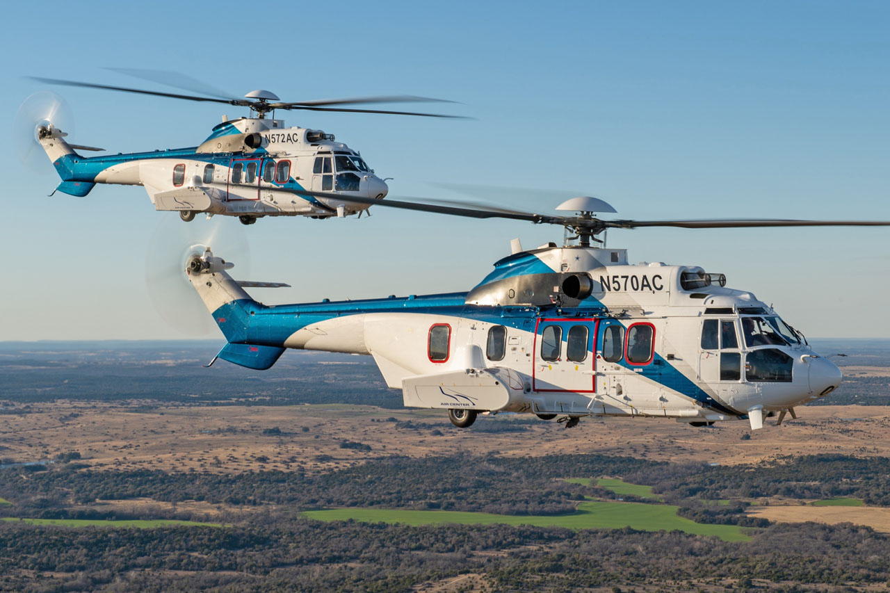 Hélicoptères H225 d'Air Center Helicopters, USA. ACH a acquis 17 H225 ex offshore et les utilise pour des missions au service de l'US Navy, de l'USAF et de l'US Army