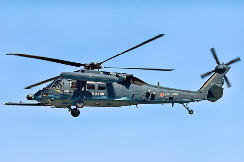 Hélicoptère UH60J de l'Armée de l'Air japonaise (JASDF) en configuration de recherche et sauvetage Search and Rescue), en camouflage 2 tons de bleu