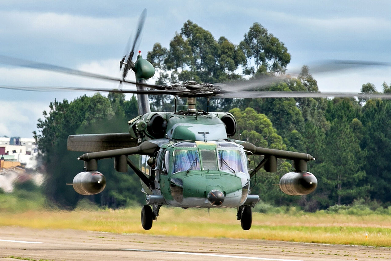 UH60 Blackhawk brésilien, équipé d'ailerons d'emport et de réservoirs supplémentaires