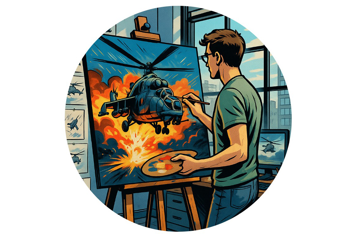 Notez le fusil d'assaut, les bouteilles d'eau, le blindage du siège, et surtout la peinture sur le masque du pilote. L'OH58 Kiowa Warrior est amené à faire du soutien très rapproché aux troupes au sol, nul doute que ce masque produise alors son effet sur les ennemis...