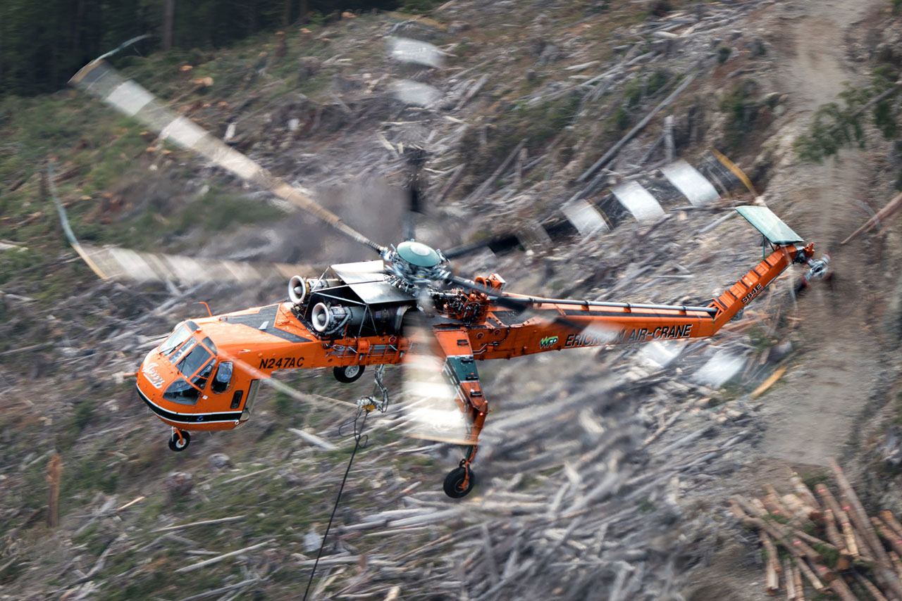 Véritable "grue volante", l'hélicoptère CH54 SkyCrane a d'abord été utilisé à des fins militaires au Vietnam. Il a trouvé une seconde vie dans la lutte contre les incendies et les travaux d'aménagement en milieu difficile