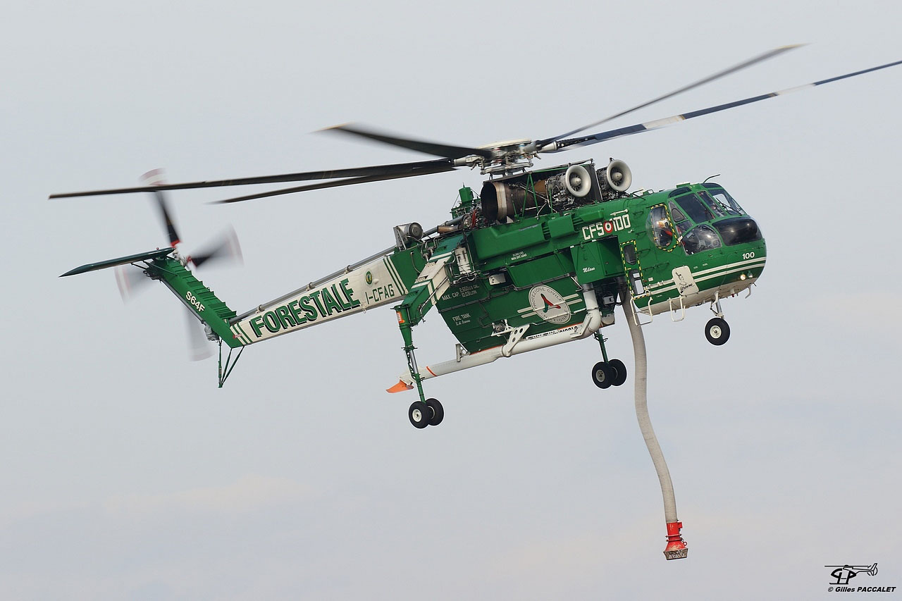 L'hélicoptère Erickson S64 AirCrane permet des larguages supérieurs à ceux des avions Canadair (114 000 litres à l'heure contre 36 000) et avec une plus grande précision. En option il peut être équipé d'une lance à l'avant pour des feux dans un immeuble de grande hauteur.