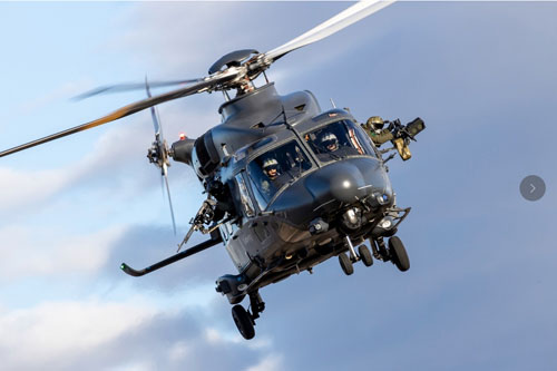 Hélicoptère AW149, Pologne. Armé de missiles Hellfire sur des ailerons d'empoirt et de mitrailleuses de porte