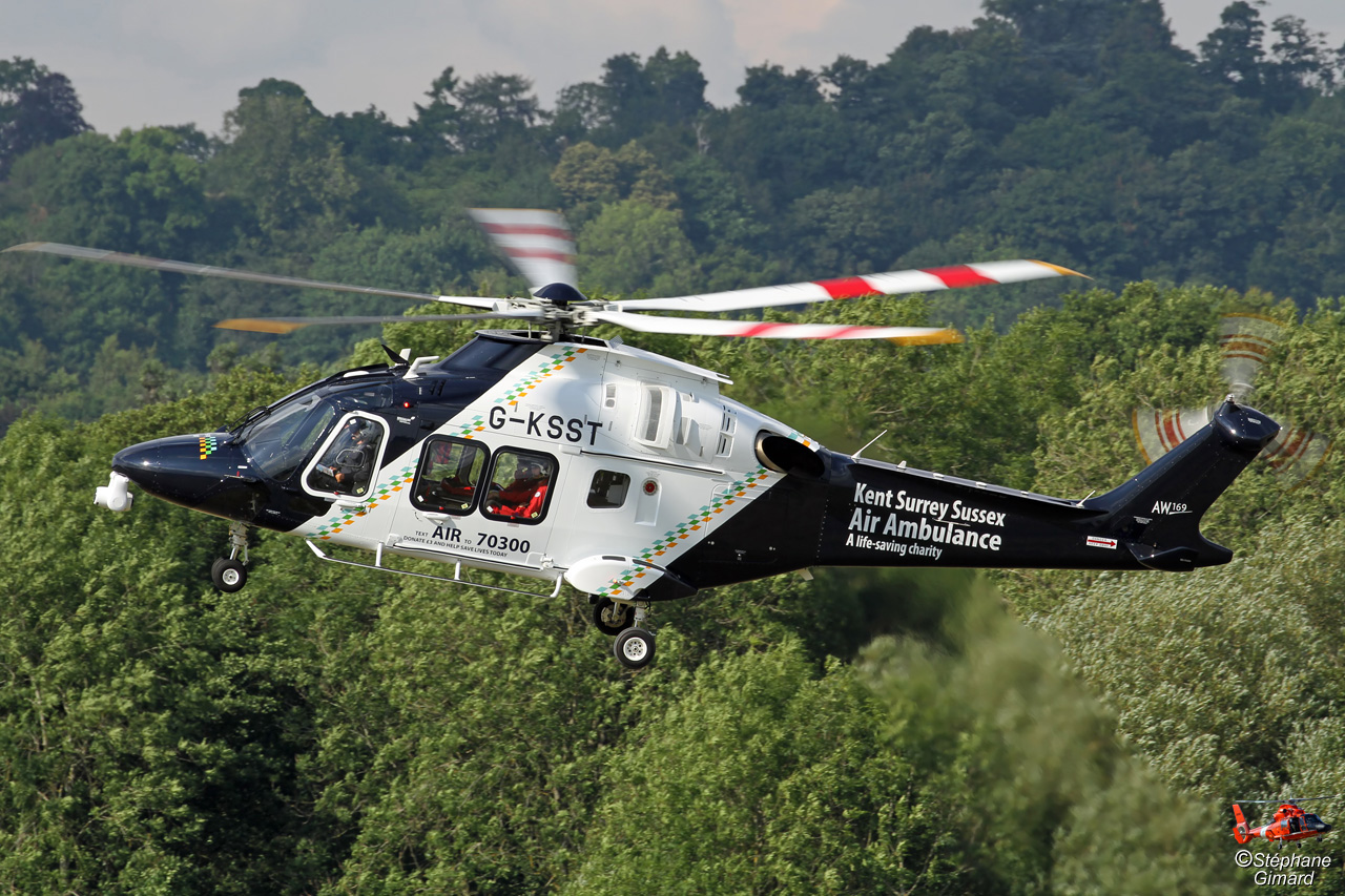 Hélicoptère AW169 de Kent Surrey Sussex Air Ambulance, Redhill