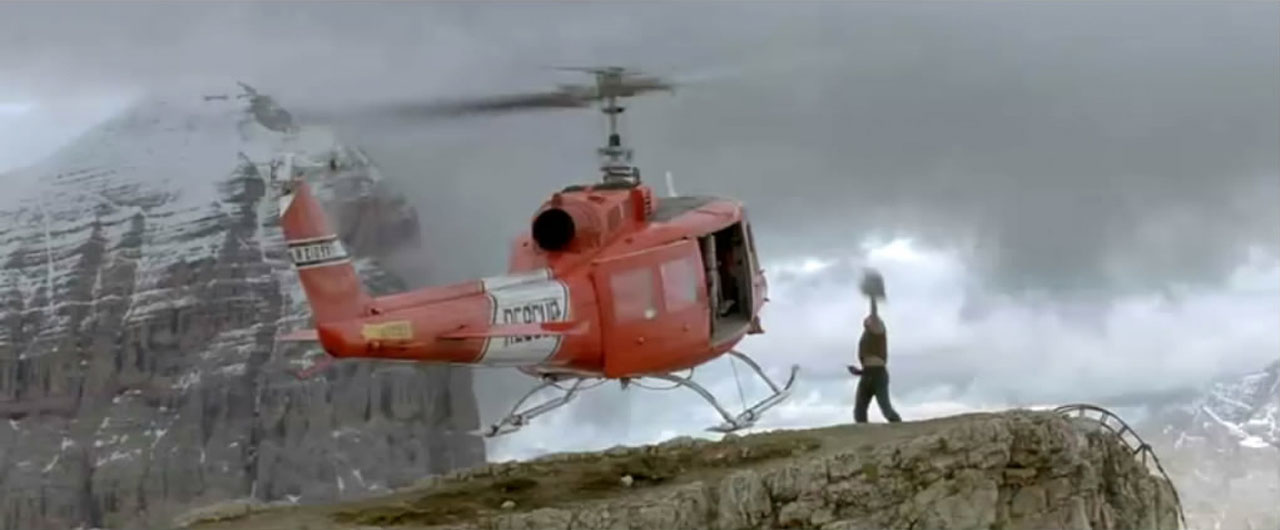 Dans Cliffhanger (1993), un hélicoptère de secours détourné par des agresseurs percute la falaise, s'en suit une lutte acharnée sur les débris de l'appareil suspendus contre la paroi...