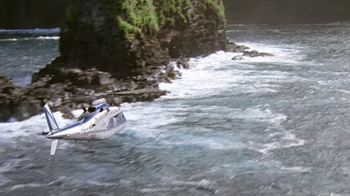 Dans Jurassic Park (1993), l'hélicoptère joue un rôle emblématique dès la scène d'introduction : un Agusta A109 transporte les visiteurs vers Isla Nublar en survolant l'océan, la jungle et les falaises de l'île. Filmée dans les paysages spectaculaires de l'île de Kaua'i à Hawaï, notamment la vallée de Manawaiopuna Falls, cette scène iconique installe d'emblée la transition entre le monde réel et l'univers fantastique du parc. Aucun danger ici : l'hélicoptère symbolise la maîtrise technologique et le contôrle apparent de la situation... un contraste frappant avec le chaos qui suivra.