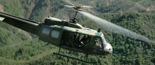 Mel Gibson à bord d'un hélicoptère UH1 Huey