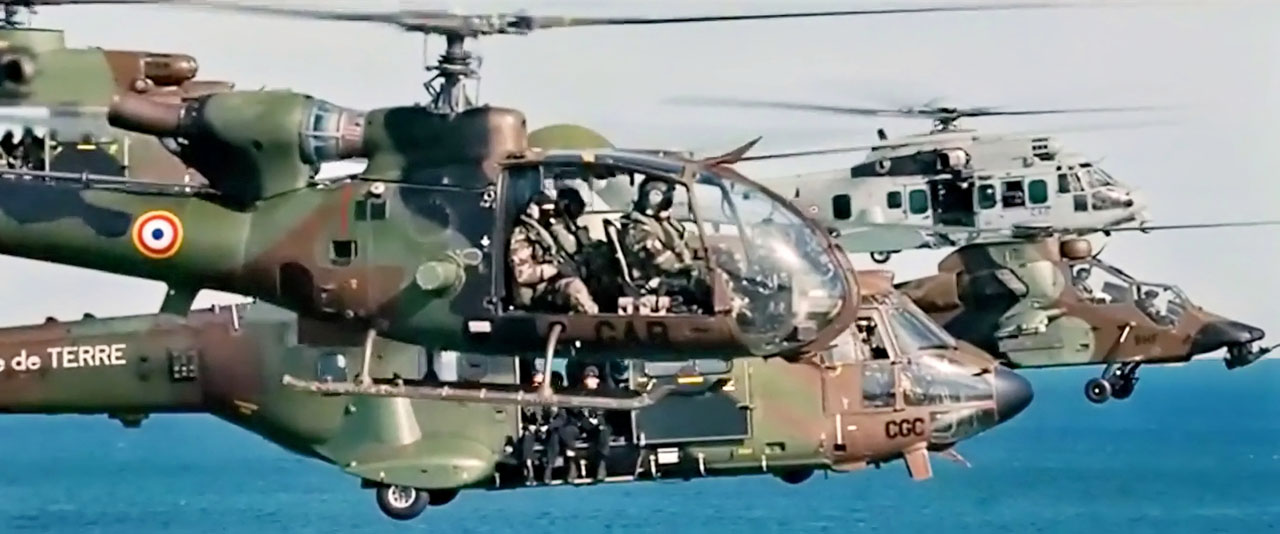 Forces Spéciales, séquence d'ouverture : un assaut héliporté à partir de la mer, avec les hélicoptères de Une très belle séquence d'ouverture avec l'ensemble des hélicoptères de l'Armée de Terre française (ALAT) dont ceux du 4e RHFS. On se croirait dans Apocalypse Now ou Blackhawk Down