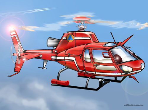 (Illustration Olivier GAZAGNES) Hélicoptère Ecureuil de la Sécurité Civile