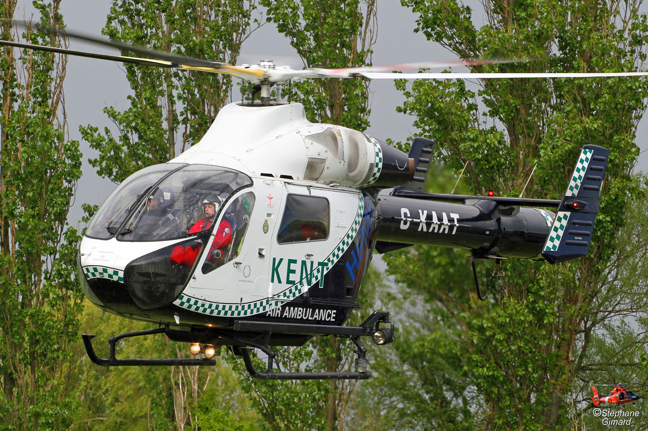 1er jour : On commence doucement avec un hélico ambulance en arrivant en Angleterre, à Marden (Kent). 40 minutes d'attente et le MD900 est dans la boite