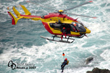 Le Luc 2007 - EC145 Sécurité Civile et Gendarmerie Hélitreuillage d'un blessé à bord d'un hélicoptère EC145 de la Sécurité Civile |