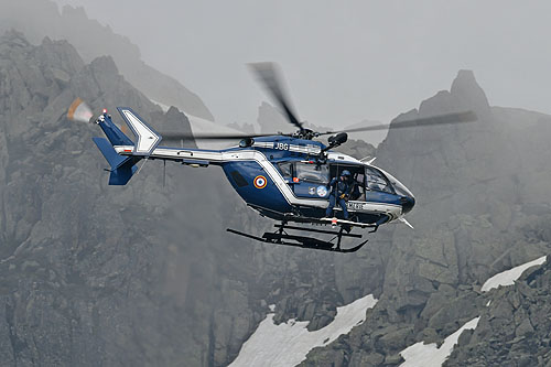 Hélitreuillage d'un binôme K9 par un hélicoptère EC145 de la Gendarmerie Nationale